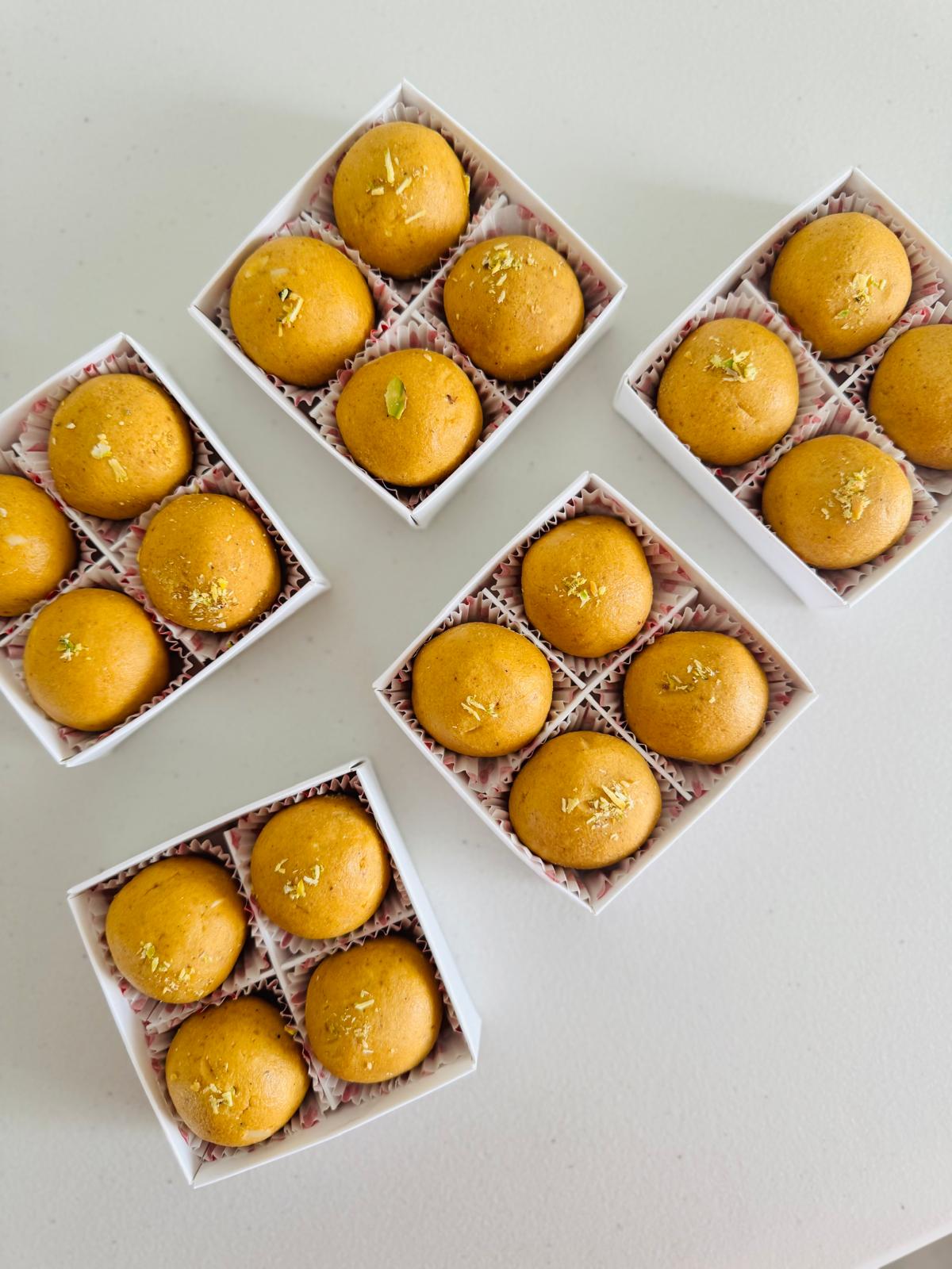 Celebrate this Diwali with our Diwali Special 4 Ladoo Box , a perfect blend of tradition and flavor. This beautifully crafted box is designed as an ideal return favor, prasad offering, or to be included in your gift hampers. Each ladoo is made with premium ingredients and reflects the rich culinary heritage of Indian festivals. Whether you are thanking your guests, offering prasad, or creating a thoughtful gift, this assorted ladoo box adds a sweet touch to every special occasion.